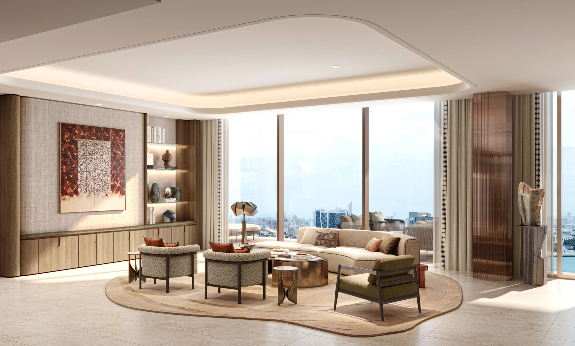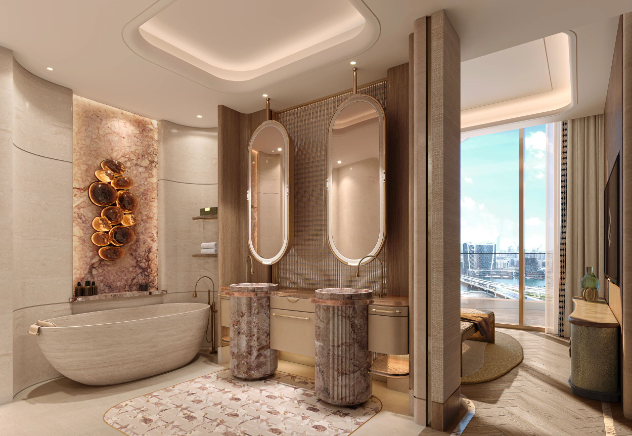 Les intérieurs s'inscrivent dans la philosophie hospitality-first de Jumeirah : des sanctuaires privés où le raffinement se lit dans chaque détail de finition. Les matériaux naturels, les proportions maîtrisées et les touches de décoration sur mesure créent une atmosphère à la fois chaleureuse et intemporelle. Les cuisines, parfaitement intégrées aux espaces de vie, associent des plans de travail haut de gamme à des rangements élégants, adaptés aussi bien au quotidien qu'aux réceptions. On retrouve dans chaque pièce cette capacité rare à conjuguer luxe discret et profondeur émotionnelle.
