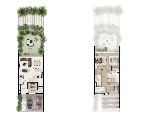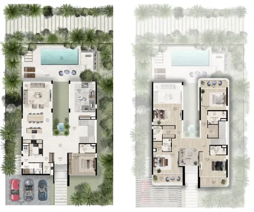 Le masterplan a été conçu pour encourager la mobilité douce et la vie en plein air, tout en préservant l’intimité et le confort des résidents. Les circulations piétonnes, les promenades paysagées et les espaces verts occupent une place centrale dans la conception du projet, favorisant une expérience résidentielle fluide et apaisante.
