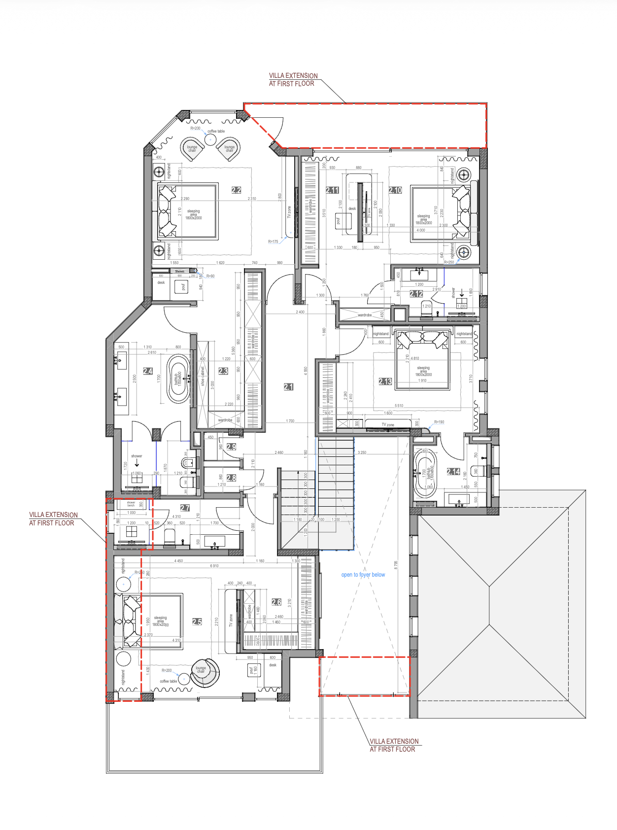 Dès l’entrée, le ton est donné : la villa a été entièrement meublée avec des pièces importées d’Italie, provenant des plus grandes maisons de design telles que Minotti, Poliform, Gamma, Cattelan Italia, Ditre et bien d’autres. Les chambres sont habillées de dressings Poliform SENZAFINE, reconnus pour leur ligne épurée et leur fonctionnalité irréprochable.