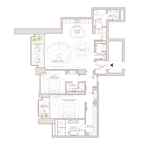 Comme dans les plus beaux hôtels de la marque Meraas, les résidents bénéficient d’un service complet au quotidien : conciergerie et sécurité 24h/24, valet parking, doorman, et buggy service pour rejoindre facilement les différents espaces du domaine.